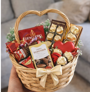 Cesta Romântica com Pelúcia e Chocolates
